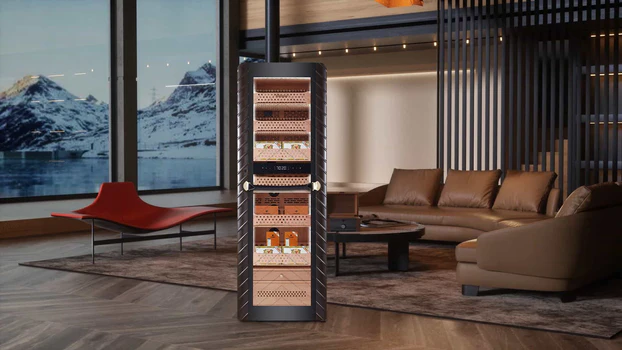 Afidano 1200 Count cigar humidor is made of Spanish Cedar and a low-E glass door equipped with an original HPR temperature and humidity constant system to give your cigar a relaxed and comfortable space for fermentation. At the same time, Afidano cigar humidors can be controlled by our APP. It is also equipped with a fingerprint lock to protect the cigars.